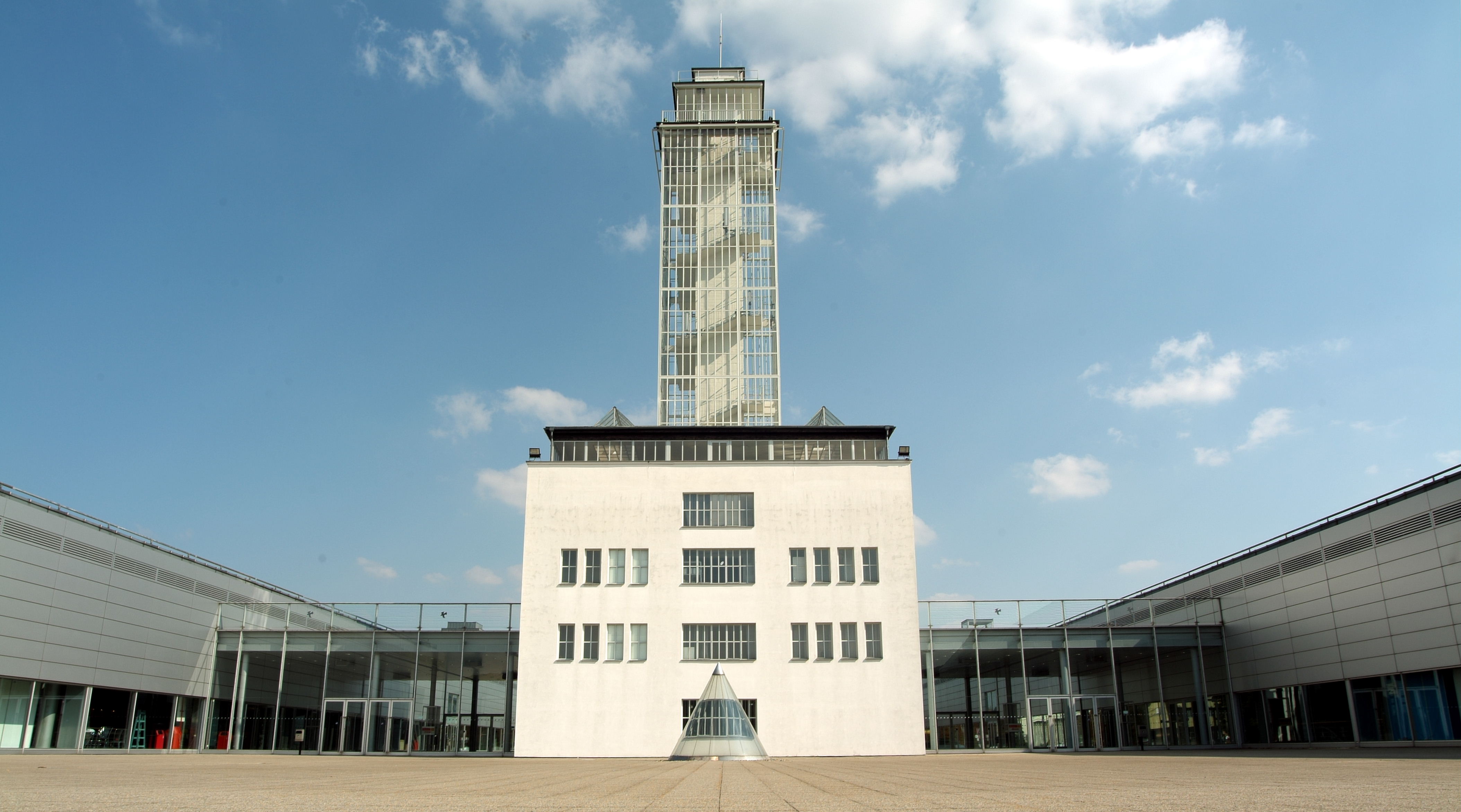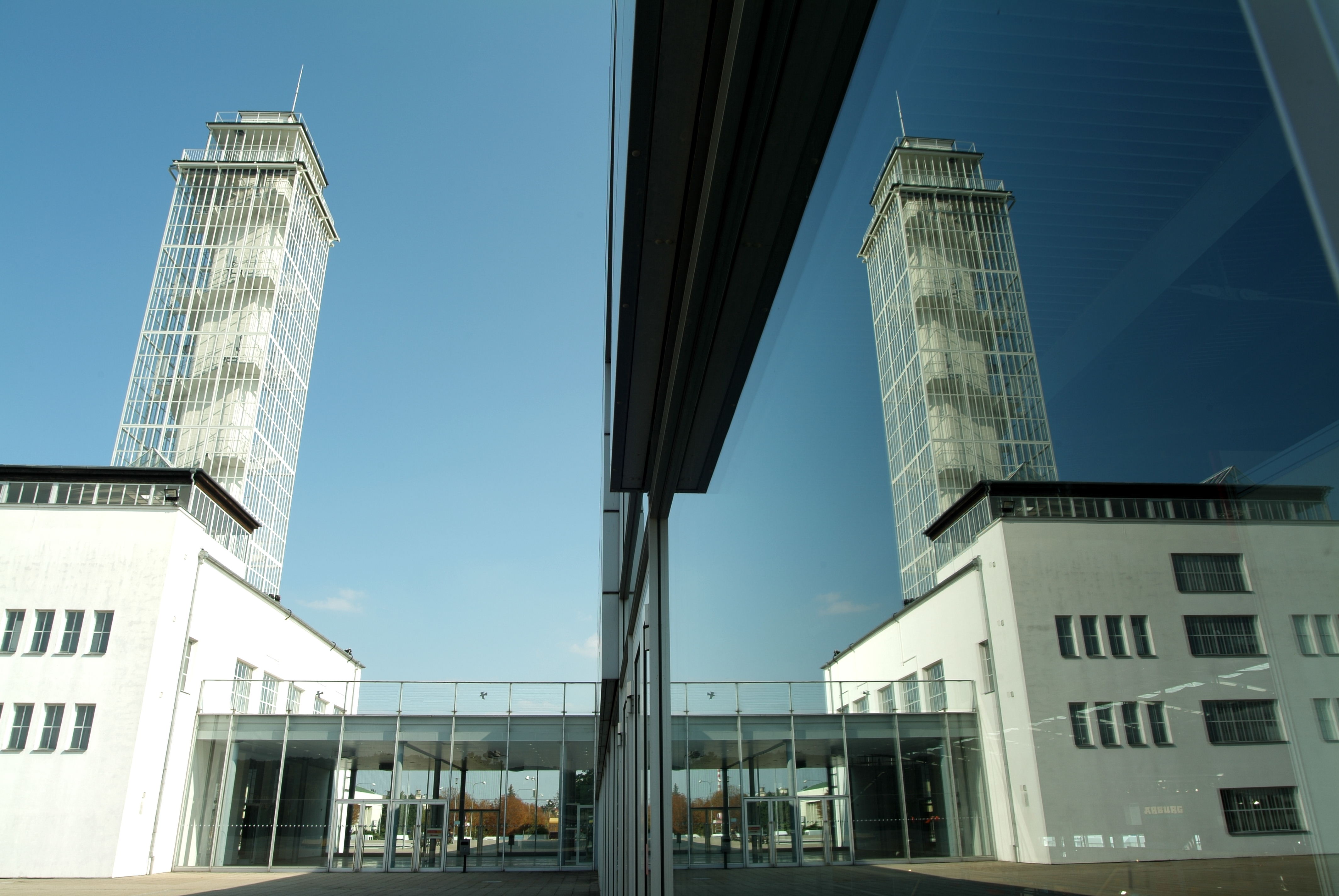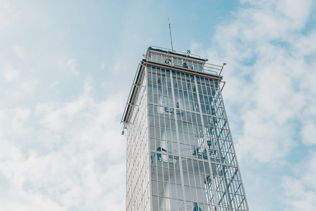 Designed by the architect Bohumír Čermák, the tower is based on a central reinforced concrete shaft with an elevator and a surrounding staircase. The top ends with a platform, on which a glass façade was later suspended, a design element that would frequently be used later in skyscrapers and high-rise buildings. From the observation deck at the top of the tower, at a height of 45 metres, visitors can enjoy views not only of the entire Brno exhibition complex but also of the Pisárky valley and the cityscape.